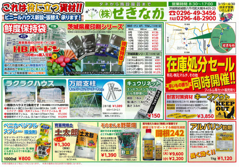 創業65年。株式会社せきながは専業生産農家向けの種苗・農業資材の卸売販売会社です。